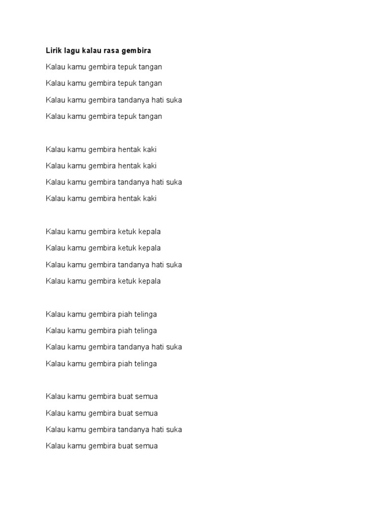 Selain memang lagu gembira, makna lagu ini begitu besar. Hati yang gembira tuhan senang. S'perti obat hati yang senang. Dettol sabun batang lasting fresh 100g isi 5 rp. Lagu ini populer menurutku dan tak mungkin ada yang tidak tahu.
