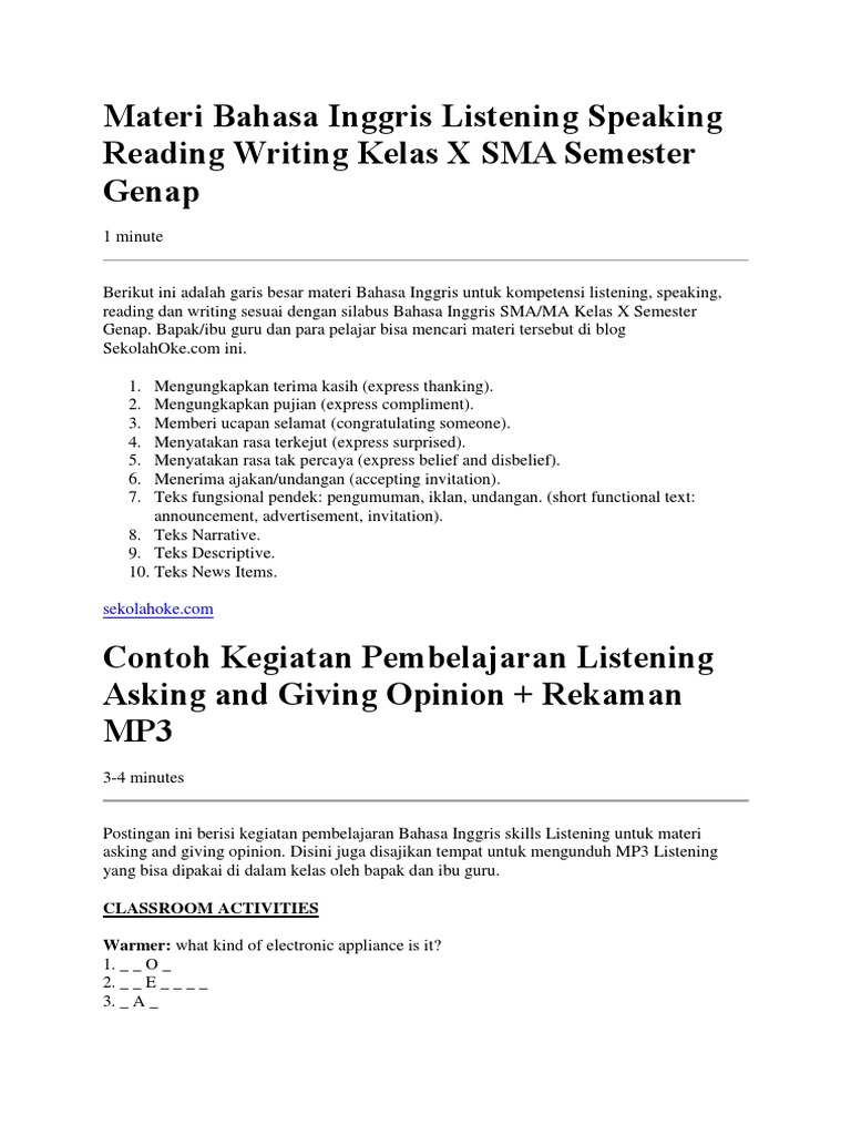 Rpp Kelas 5 Sd Bahasa Inggris Speaking - Rencana Pelaksanaan Pembelajaran Rpp Viewnama Sekolah Sd Muhammadiyah Condongcatur Mata Pelajaran Bahasa Inggris Kelas Semester I 1 Pertemuan Unit 1 5 Starting Point Doc Document : Demikianlah rencana pelaksanaan pembelajaran kelas 5/v jenjang sd/mi semester 1/ganjil dan 2/genap kurikulum 2013 edisi revisi terbaru dapat kami bagikan, semoga bermanfaat.